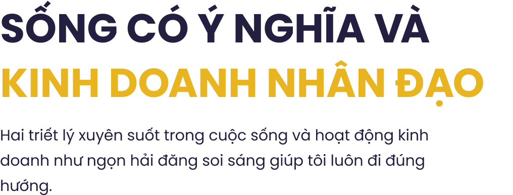 Với tôi kinh doanh không chỉ hướng đến lợi nhuận mà còn phải tạo ra giá trị cho cộng đồng và phát triển xã hội. Điều này thể hiện qua các sản phẩm và dịch vụ có ý nghĩa để đem lại sự phát triển bền vững. Bởi cho đi là nhận lại mãi.